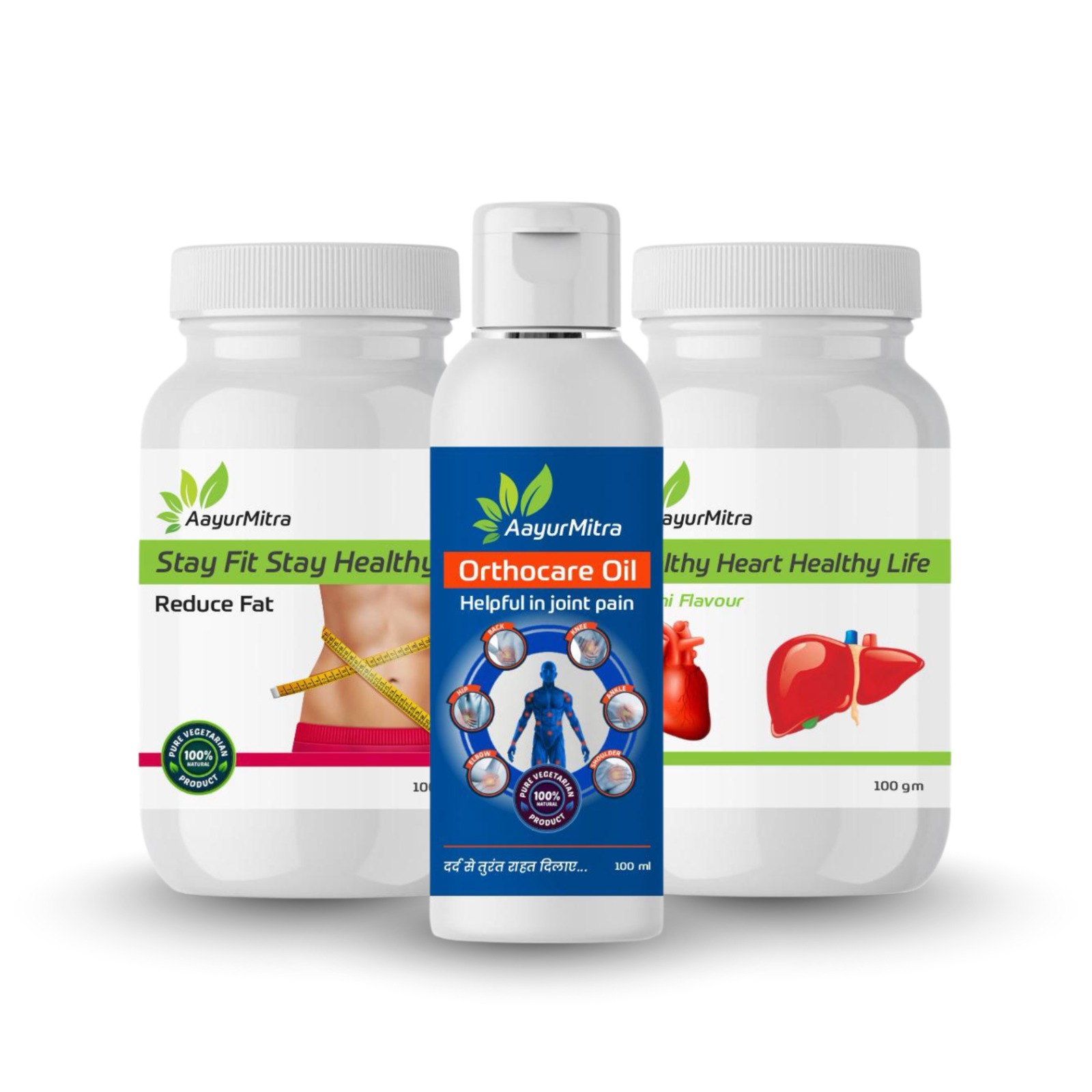 The AayurMitra Total Wellness Combo is a thoughtfully curated 3-in-1 ayurvedic value pack designed to support daily wellness, mobility, and metabolism. It brings together three powerful ayurvedic formulations to help you maintain a balanced, active, and healthier lifestyle—naturally.